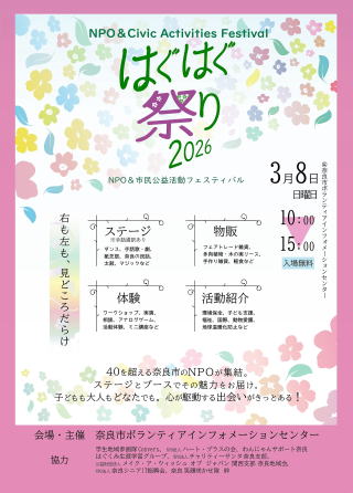 奈良市のNPO&市民公益活動のフェスティバルの「はぐはぐ祭り2026」に出展します。